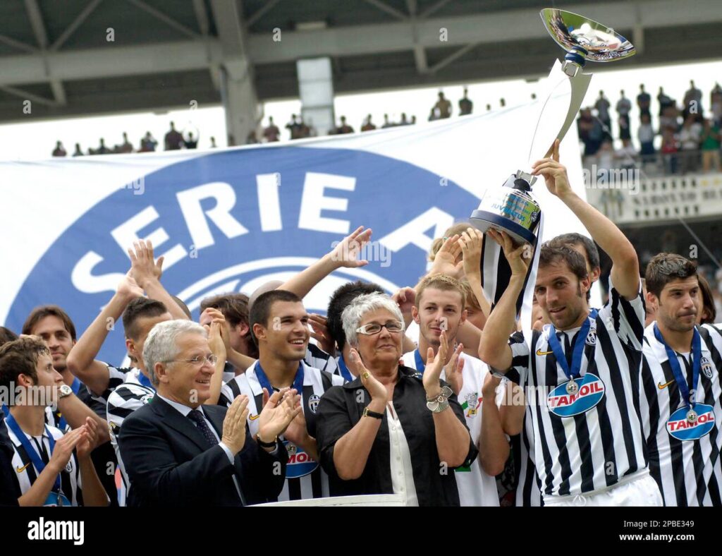 Ο Del Piero βίωσε το μεγαλύτερο σοκ της καριέρας του το 2006, όταν ξέσπασε το σκάνδαλο Calciopoli. Η Γιουβέντους βρέθηκε στο κέντρο του σκανδάλου και η απόφαση που ακολούθησε ήταν η αφαίρεση του Scudetto του 2004-2005 και του 2005-2006, καθώς και ο υποβιβασμός της Γιουβέντους στη Serie B για πρώτη φορά στην ιστορία της. Παρά την τεράστια απογοήτευση, την αβεβαιότητα για το μέλλον του συλλόγου και τις προτάσεις που είχε, ο Del Piero παρέμεινε πιστός και έγινε το σύμβολο της Γιουβέντους κατά τη διάρκεια της δύσκολης αυτής περιόδου, ηγούμενος της ομάδας στην Serie B βγήκε πρώτος σκόρερ βοηθώντας την να επανέλθει στη Serie A.