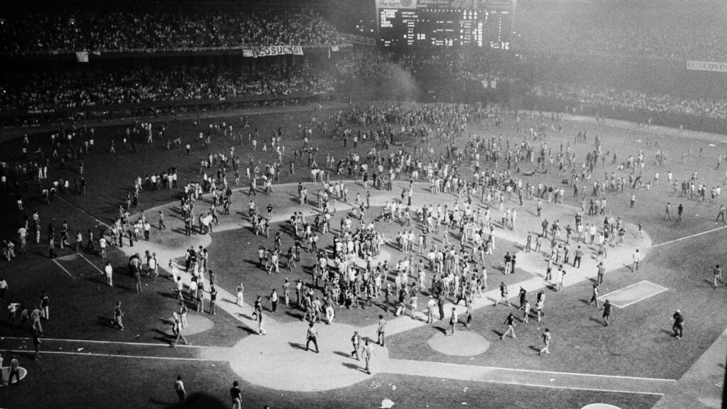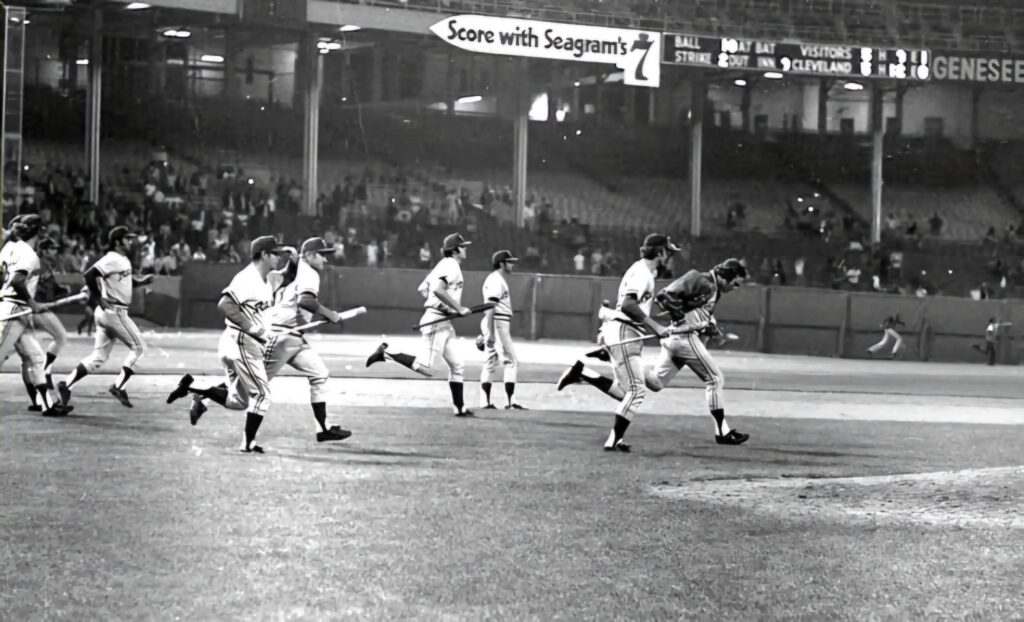 Ο μάνατζερ των γηπεδούχων “Ινδιάνων”, συνειδητοποιώντας ότι οι Τεξανοί επρόκειτο να σφαγιαστούν, έβαλε τους δικούς του παίκτες να μπουν μπροστά ώστε να ηρεμήσουν του μεθυσμένους οπαδούς.