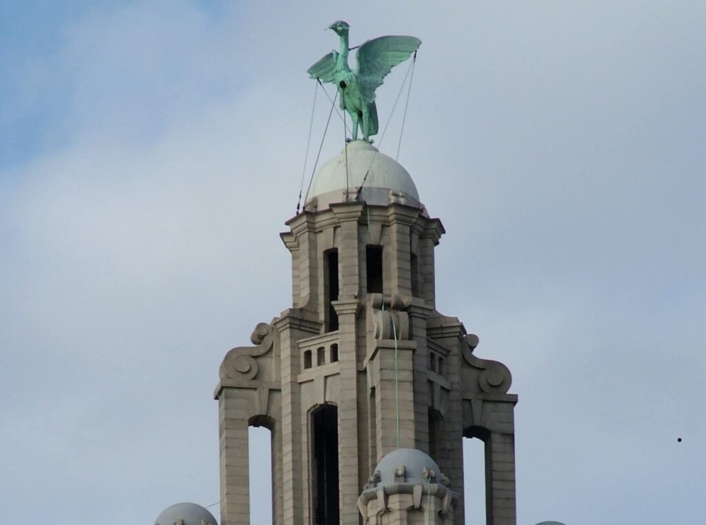 Το διάσημο κτήριο με το ένα από τα δύο Liver Birds. Λέγεται ότι ένα είναι αρσενικό και το άλλο θηλυκό , ονόματι Bertie και Bella.
