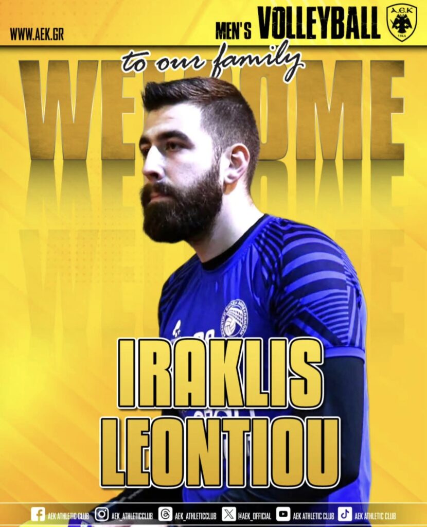«Η ΑΕΚ βρίσκεται στην ευχάριστη θέση να ανακοινώσει την έναρξη της συνεργασίας της με τον Ηρακλή Λεοντίου. Ο 29χρονος (23/11/1996) κεντρικός, ύψους 2,00 μ., υπέγραψε το συμβόλαιό του και εντάσσεται στο δυναμικό της ανδρικής ομάδας Βόλεϊ του Συλλόγου.